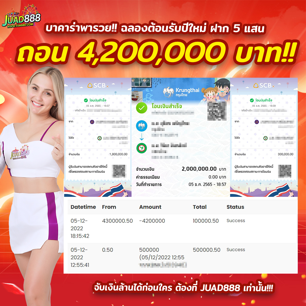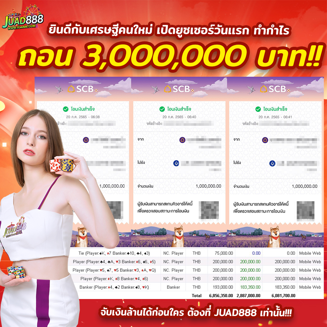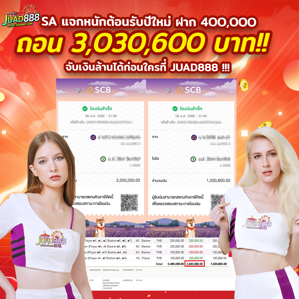 ซึ่งทำให้ จ๊วด888 กลายเป็นเว็บเล่นคาสิโนที่ให้ความบันเทิงจนเป็นที่นิยมสูงสุดในปีนี้ ความเสถียรภาพของการเดิมพันและระบบเกมได้รับความน่าเชื่อถือทำให้ทั้งค่ายของเราเป็นที่น่าสนใจมาก สำหรับนักพนันที่ต้องการเล่นคาสิโนที่สมจริง ประสิทธิภาพที่โดดเด่น JUAD888 คือเว็บไซต์ที่ทำให้ผู้เล่นนั้นสนใจมองเป็นตัวเลือกแรกๆ ของผู้เล่นที่มองหาคาสิโนออนไลน์ที่ครบครันและเชื่อถือได้ในปัจจุบันนี้