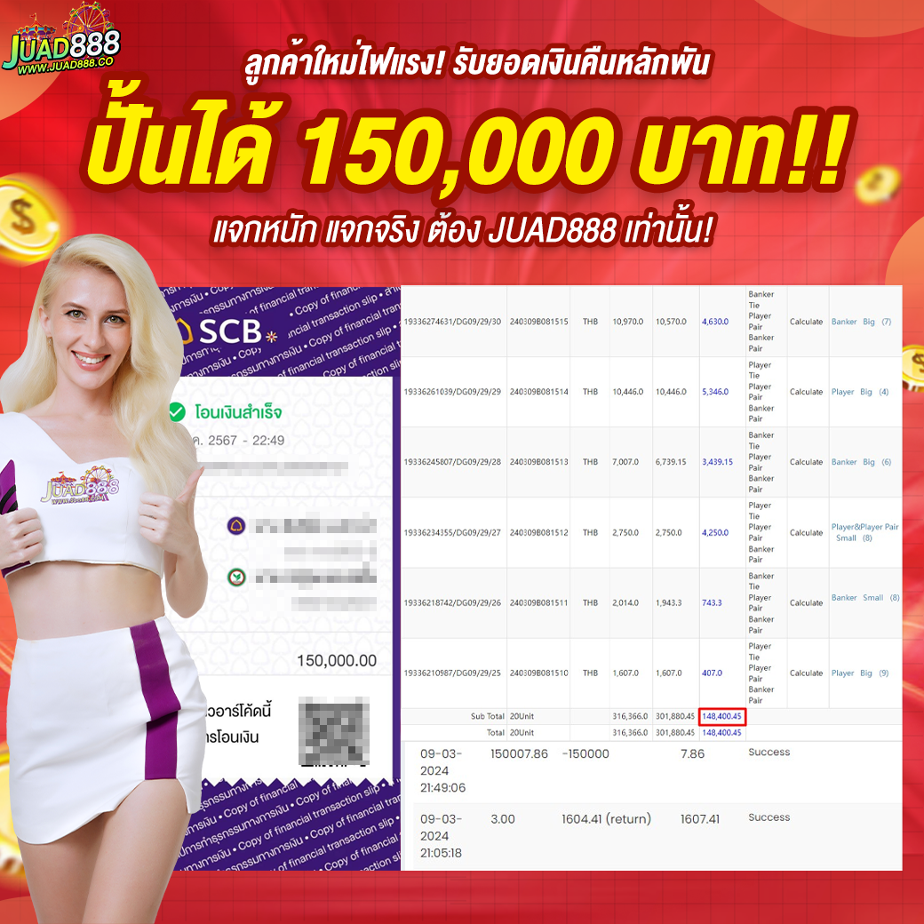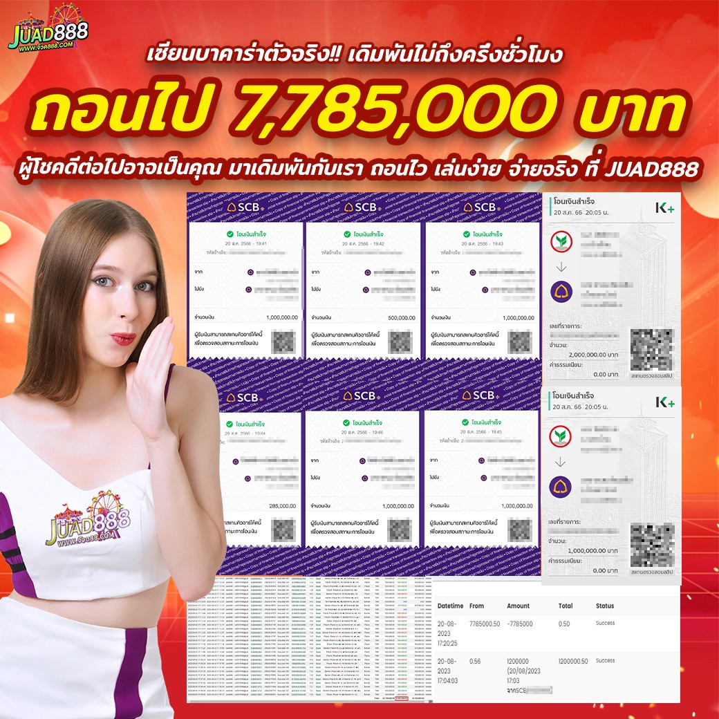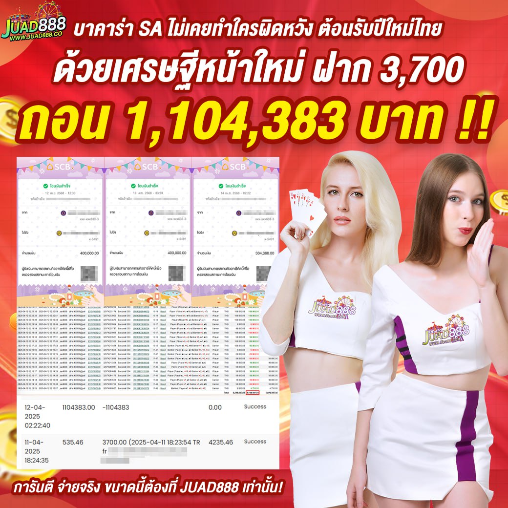 JUAD888 เว็บคาสิโนที่สุดจ๊วดในขณะนี้ ยุคใหม่ของเว็บพนันที่ครบวงจรที่สุดในที่เดียว เป็นการรวมเอาค่ายคาสิโนชั้นนำของโลกเข้ามาไว้ในเว็บเดียว ไม่ว่าจะเป็นแบรนด์ชั้นนำระดับโลก SA Gaming , AE Sexy หรือ Sexy Gaming ของเรานั้นเอง อีกทั้งยังมี Joker Gaming และ PG Slot Game ที่เป็นที่ขึ้นชื่อของสล็อตออนไลน์ พูดถึงสล็อตยังไงก็ต้องคิดถึงสองค่ายนี้ก่อนอันดับต้นๆ และยังมี WM Casino , Dream Gaming (DG) , Pretty Gaming , AMB Poker นี่เรายังขนมาไม่หมด คาสิโนไหนดัง คนเล่นเยอะ เราเอามาให้เล่น ระบบการทำงานของเรารวดเร็ว ไม่ยุ่งยาก นอกจากฝากถอนเงินแค่ 10วินาทีแล้ว ระบบคาสิโนก็ไม่ยุ่งยาก อยากเข้าเล่นค่ายไหน ก็เข้าเล่นได้เลย ไม่ต้องโยกเงินให้ยุ่งยาก กระเป๋าเดียว ใช้ได้ทุกค่าย ที่นี่เท่านั้น จ๊วด888