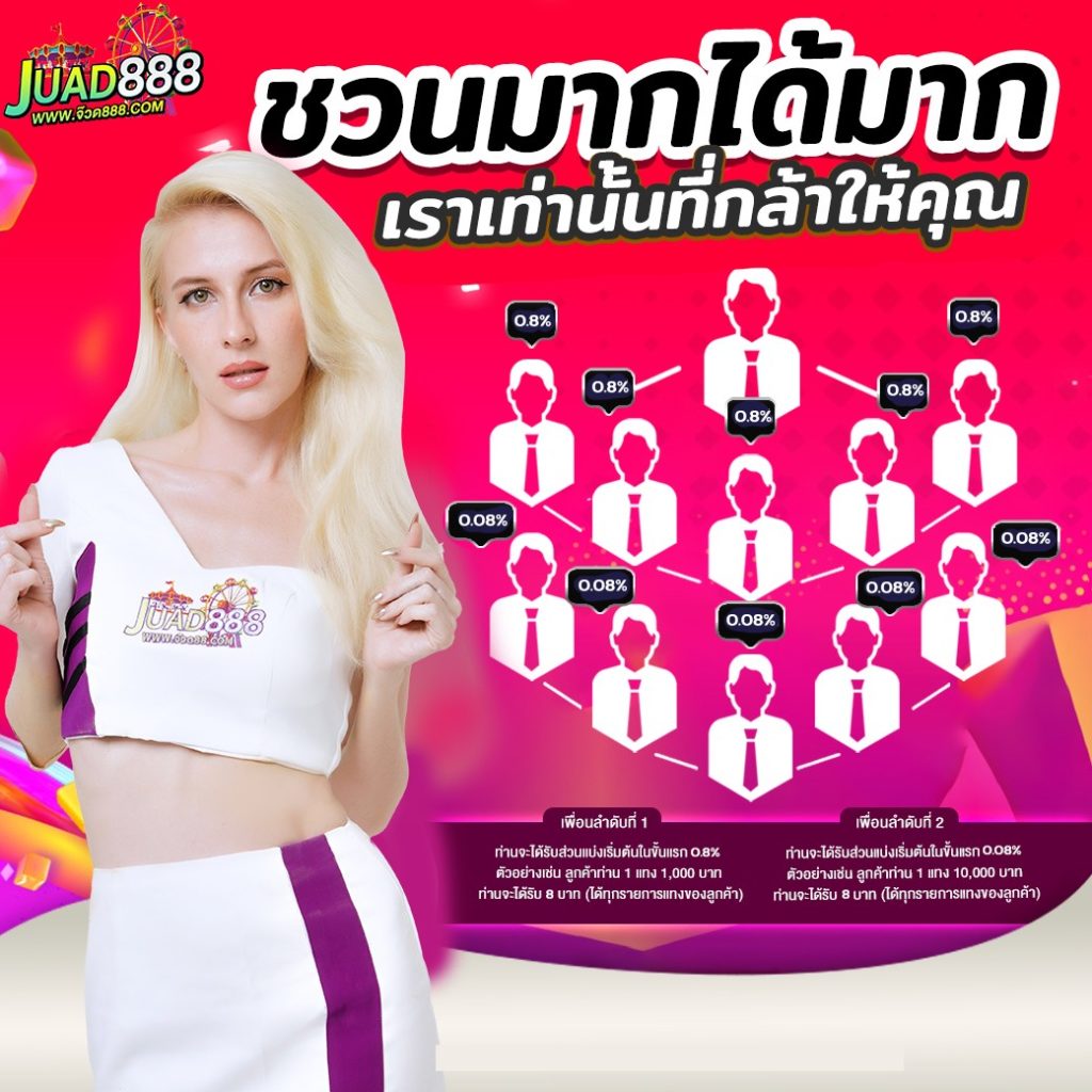 ท่านสามารถนำลิ้งค์ด้านล่างนี้หรือนำป้ายแบนเนอร์ ไปแชร์ในช่องทางต่างๆ ไม่ว่าจะเป็น เว็บไชต์ส่วนตัว, Blog, Facebook หรือ Social Network อื่นๆ หากมีการสมัครสมาชิกโดยคลิกผ่านลิ้งค์ของท่านเข้ามา ลูกค้าที่สมัครเข้ามาก็จะอยู่ภายให้เครือข่ายของท่านทันที และหากลูกค้าภายใต้เครือข่ายของท่านมีการเดิมพันเข้ามา ทุกยอดการเดิมพัน ท่านจะได้รับส่วนแบ่งในการแนะนำ 0.8% ทันทีโดยไม่มีเงื่อนไข