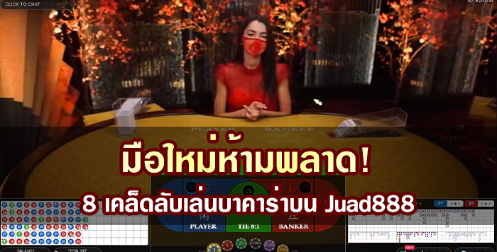 เกมบาคาร่าบน Juad888 นั้นเล่นได้ทั้งบนคอมพิวเตอร์ โทรศัพท์มือถือ และแท็บเล็ต สามารถเข้าถึงได้ง่ายและสะดวกมากขึ้น มีให้เลือกเล่นทั้งโต๊ะธรรมดาและโต๊ะ VIP มีดีลเลอร์สาวสวยแต่งตัวน่ารักมาคอยเปิดไพ่ให้ รองรับผู้เล่นได้ตั้งแต่ 2-8 คนต่อโต๊ะ มีกติกาและการจ่ายเงินรางวัลเหมือนกับบาคาร่าในบ่อนคาสิโน สามารถเดิมพันได้ 24 ชั่วโมงโดยไม่มีวันหยุด