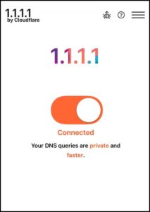 2. เข้าแอปและกดที่ ขีด 3 ขีด มุมบนขวา เลือกที่ 1.1.1.1 ให้ขึ้นเครื่องหมายถูก ตามภาพ